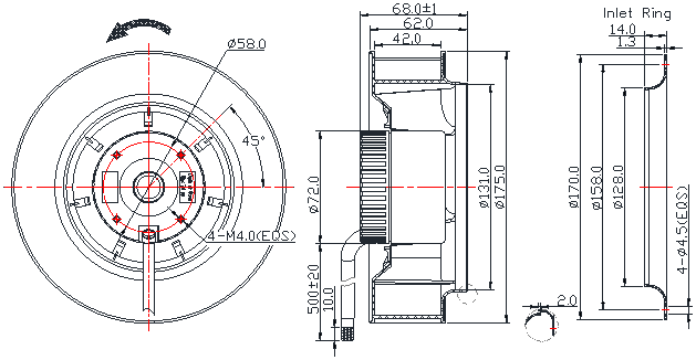 平衡好,靜音,風量大,壽命長,功率小,很好的用于市場上。離心機JXJ17562D2H-B風輪,采用進口ISC滾珠,,轉速可以高達4000RPM ,風量達500CFM,常用于凈化器上,帶FG RD PWM等功能,平衡穩定,是公司成熟之產品。詳細請咨詢!
